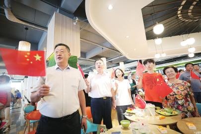 开餐前还有一项重要环节,党委成员共同切开了书写着“庆祝中华人民共和国成立70周年”和“山东交通学院欢迎2019级新生”的蛋糕,并和在场的师生一起举起红旗,唱响《我和我的祖国》,共同庆祝中华人民共和国成立70周年。党委学生工作部(处)副部(处)长隋翀说:“感谢党、感谢祖国,是学生应当上好的开学第一课。今天大家有机会相聚在山东交通学院,离不开党的领导和祖国的发展壮大。”