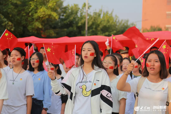 全体师生齐唱《我和我的祖国》,传递国旗
