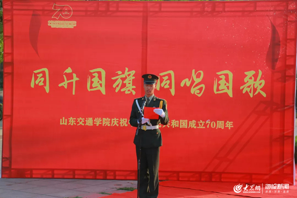 大众网教育·海报新闻讯9月29日,山东交通学院举办“同升国旗,同唱国歌”主题教育活动,共庆祖国华诞,共享伟大荣光。学校领导孙秀丽、陈松岩、唐勇、徐晓红、李贞涛、孔祥云、范玉斌、孟庆旭出席活动。活动由团委书记周颜玲主持。