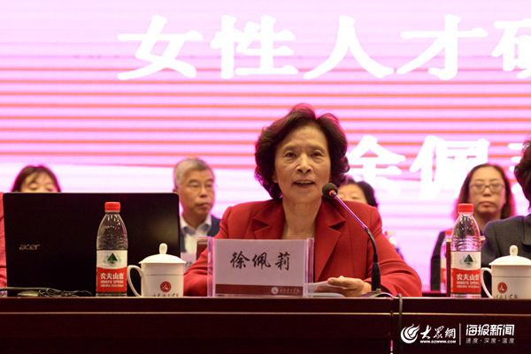 中国人力资源开发研究会女性人才研究会理事长徐佩莉在讲话中谈到,近年来,山东省女性人才研究工作取得了累累硕果。在接下来的工作实践中我们要紧跟时代发展,紧贴女性需求,面向脱贫助困,一带一路,互联网+,人工智能,大数据时代的战略任务,进行女性人才发展性和创新性的研究。