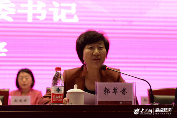 开幕式由山东交通学院党委书记孙秀丽主持。山东女子学院党委书记郭翠为开幕式致辞,她指出全社会要提高对女性成长成才的关注和重视,促进女性发展与经济社会协调发展,希望通过论坛上的思想交流和碰撞,能够带来新的理念,新的思想,有助于营造促进女性发展的环境 ,拓宽培养女性人才的社会基础。山东女子学院作为全国3所女子普通本科高校之一,立足培养高素质女性应用型人才,在优化学科专业布局,改革人才培养模式,开展创新创业教育以及打造女性教育和研究特色等方面做出了一系列积极探索。