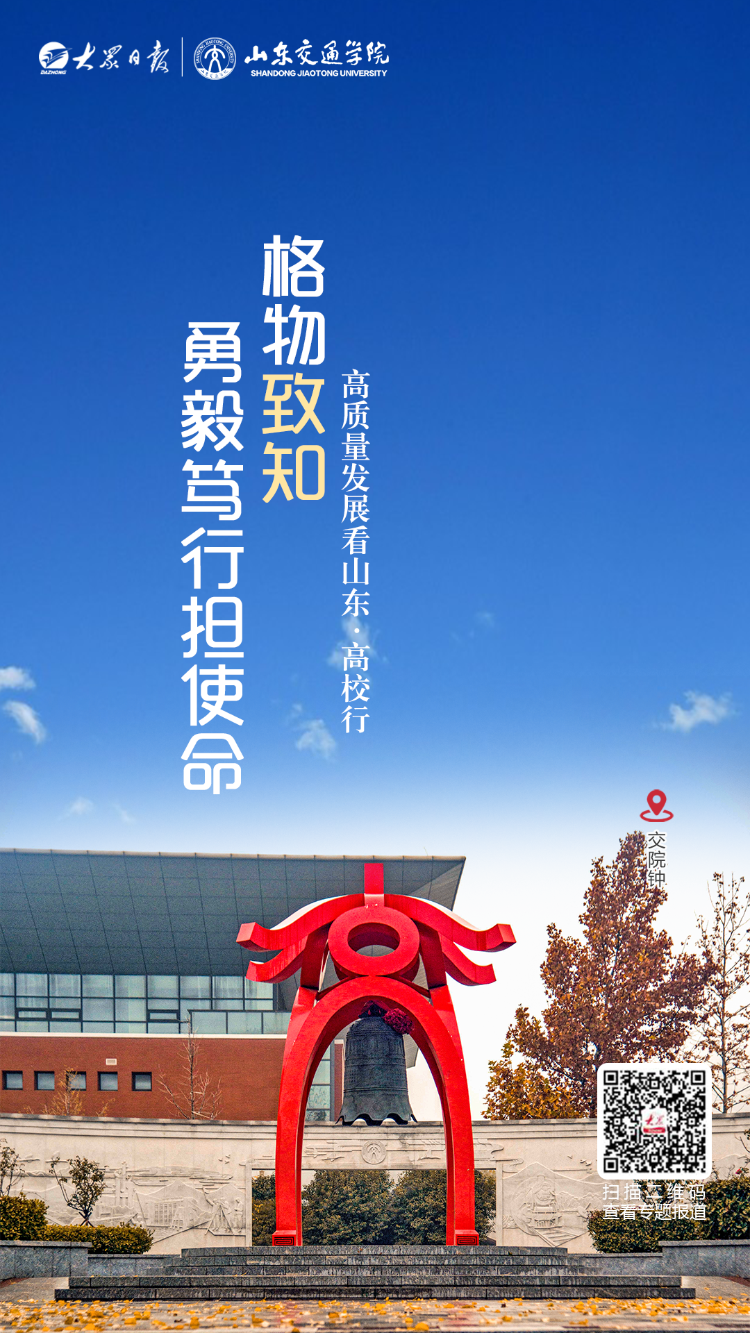 日前,山东省教育厅与大众日报联合发起“高质量发展看山东·高校行”大型主题活动。依托大众日报和大众日报客户端、学习强国等平台,走进山东高校,看高质量发展为高等教育催生出来的勃勃生机,探寻高校高质量发展的着眼点和发力点。