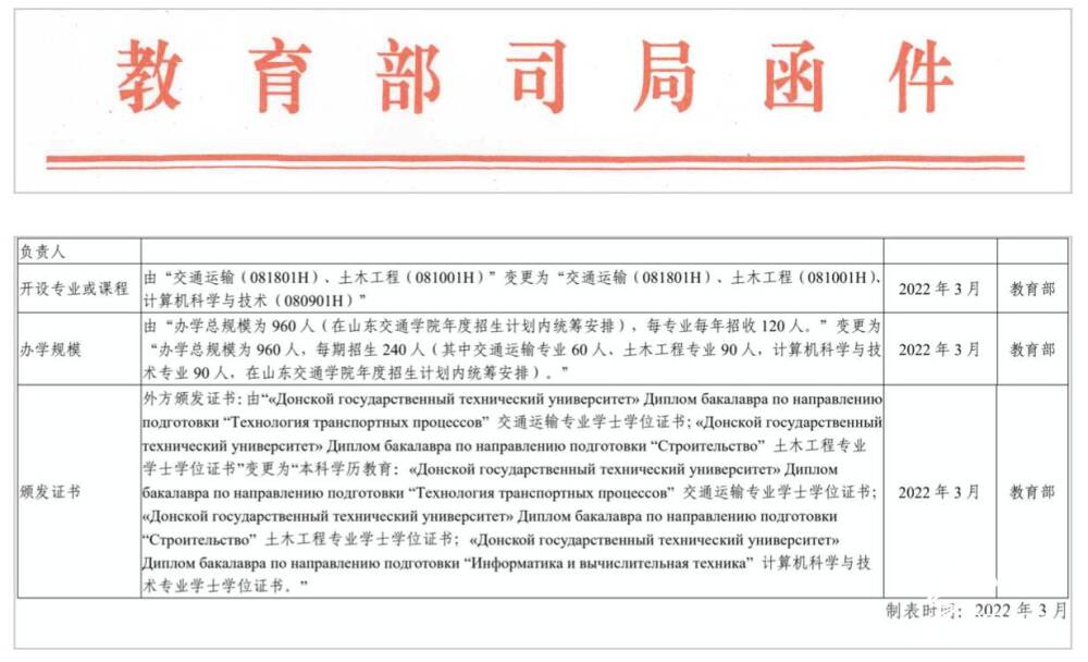 近日,教育部发布《山东省中外合作办学机构办学事项变更的意见》,公布了2022年度山东省普通高等学校本科中外合作专业的备案和审批结果。山东交通学院顿河学院申请增设的中俄合作举办计算机科学与技术本科专业成功获批,该专业将于2022年9月开始招生。
