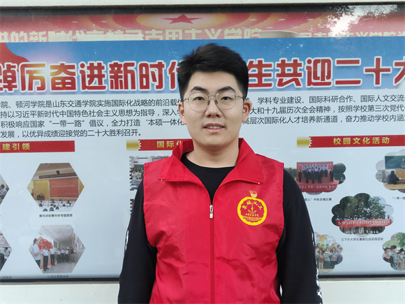 党的二十大报告指出,当代中国青年生逢其时,施展才干的舞台无比广阔,实现梦想的前景无比光明。一代人有一代人的使命,一代人有一代人的担当。山东交通学院大四学生、泉城义工沈庚表示,“作为新时代青年,我们生于盛世、长于盛世,未来的盛世更由我们创造。”作为一名大学生党员和泉城义工青年志愿者,他将始终牢记习近平总书记对青年人的嘱托,感党恩、听党话、跟党走,让青春在全面建设社会主义现代化国家的实践中热烈绽放。