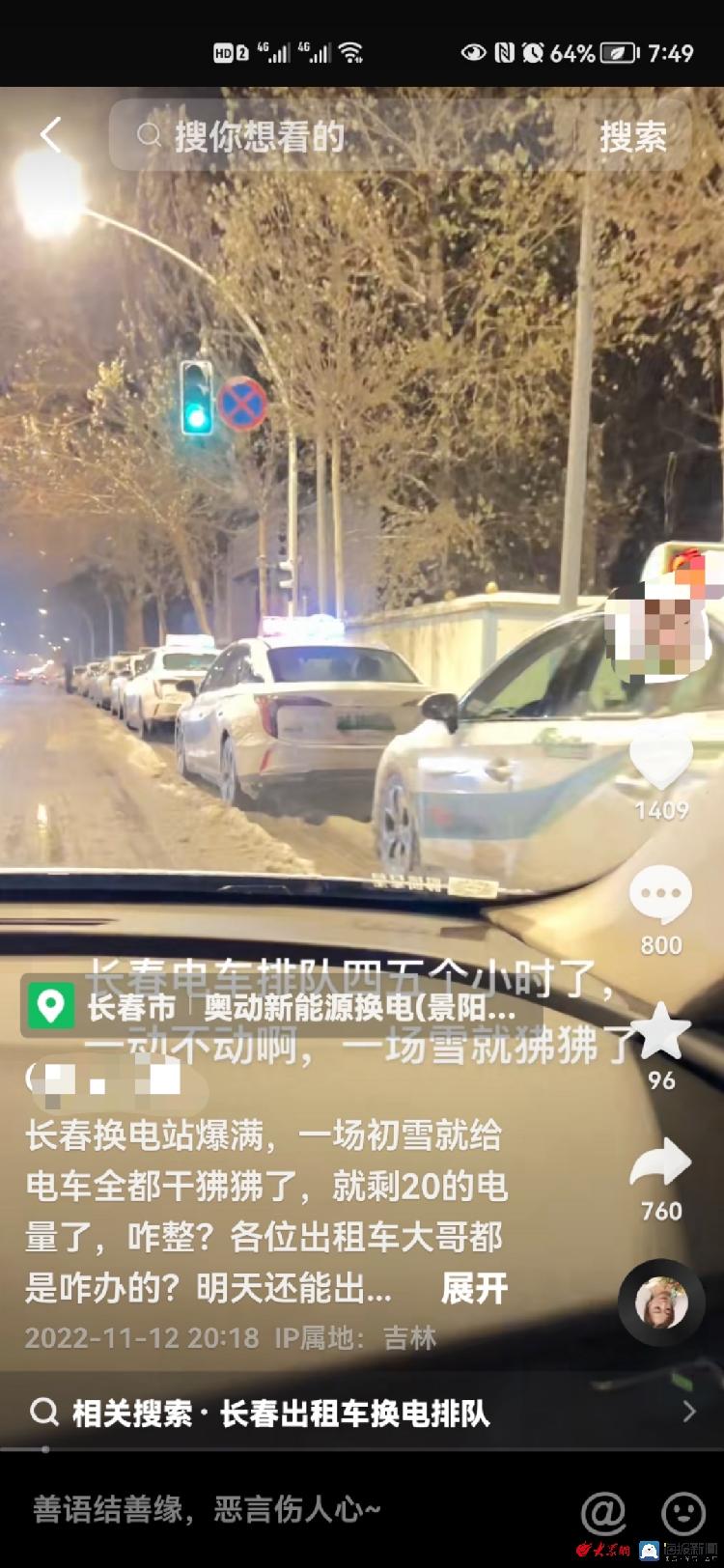 长春网友11月12日晚上录制的出租车换电长队