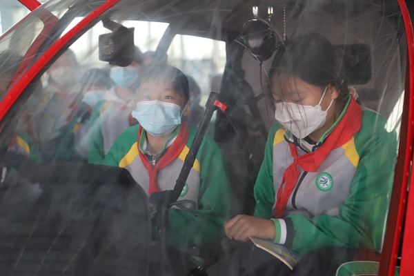 孩子们到商河机场研学,最大的亮点是可以接触到真飞机,近距离观察飞机的各个部件、仪表,进入飞机驾驶舱体验手握操纵杆的感觉,还可以乘坐轻型运动飞机飞向蓝天,这也是最受孩子们喜爱的一个项目。