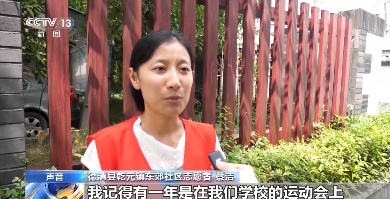 浙江省德清县乾元镇东郊社区志愿者 蔡洁:有一年是在我们学校的运动会上,我挺想报800米的,挺想尝试的,但是其实我挺胆怯的。然后在我跑步的过程当中,其实张老师一直都是在陪跑的,然后在我最后要跑到终点的时候,我几乎是摔了出去的,然后张老师猛地就跑到了终点,把我给接住了,当时他比我自己跑完了还要开心热泪盈眶,我到现在还记得他当时那种激动的心情。