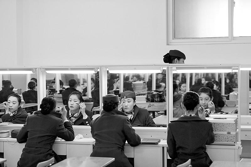在山东交通学院一间教室内,27个女生穿着统一的紫红色呢子制服在老师的指导下面对镜子化妆打扮。今年9月,该院招收的首批高速动车乘务专业学生开始接受系统教育。 记者王锋 摄