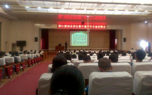 10月10日,由学生工作处主办,汽车工程学院承办的第61期创业讲坛暨中通客车专场招聘会在我校长清校区学术报告厅成功举办,500余名毕业生参加了活动。