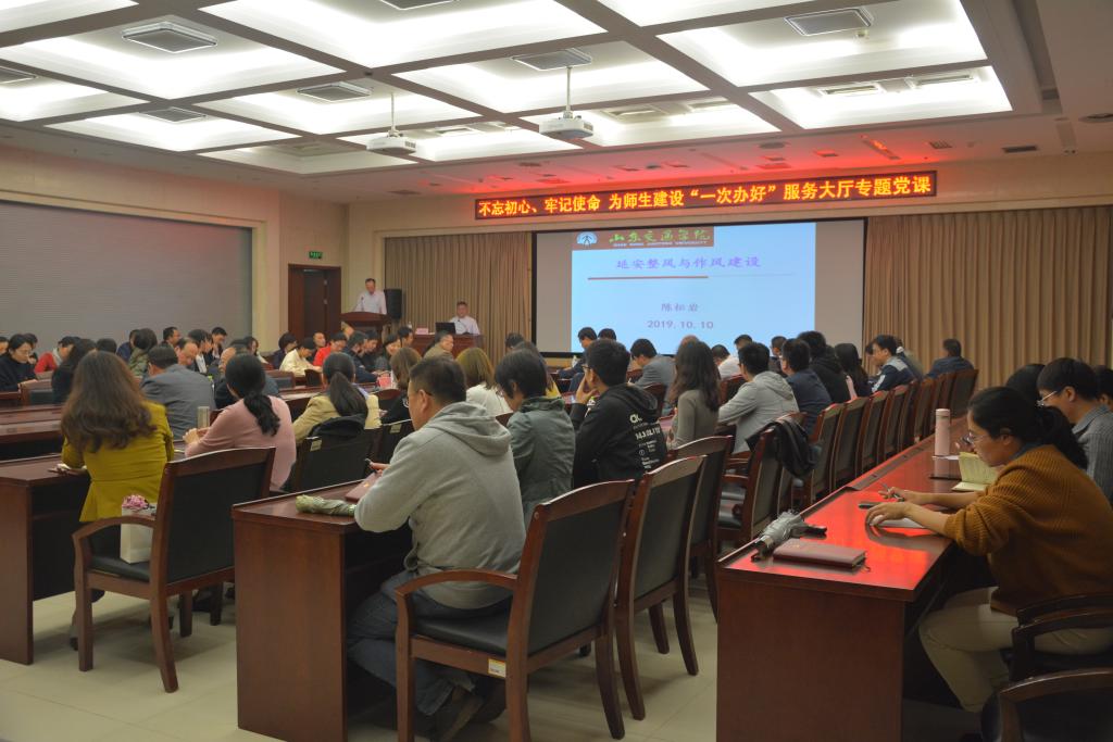 为扎实开展“不忘初心、牢记使命”主题教育,根据中央、省委的决策部署和学校党委要求,10月10日,党委副书记、院长陈松岩在长清校区学术报告厅会议室为机关党员、干部上了一堂“不忘初心、牢记使命,为师生建设‘一次办好’服务大厅”专题党课。