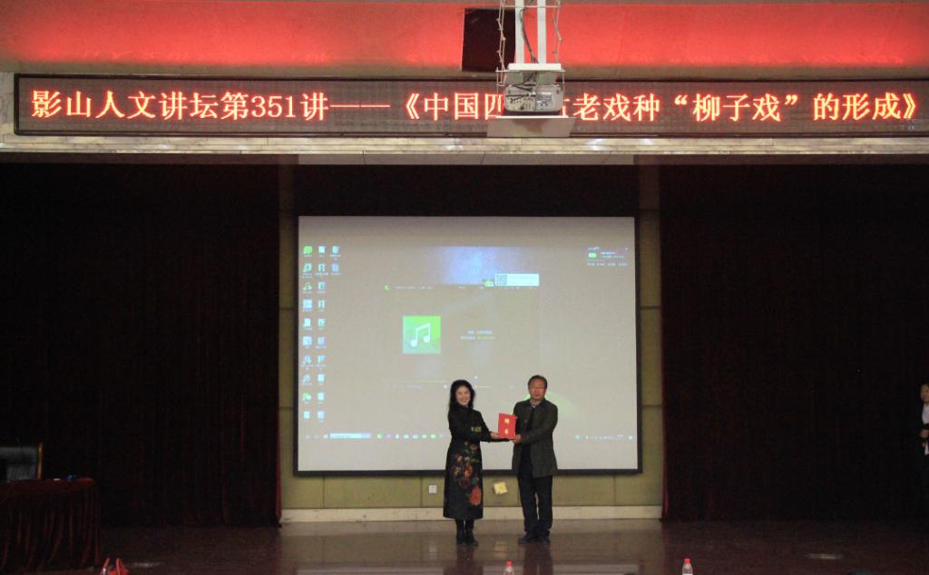 11月14日晚,影山人文讲坛第351讲在长清校区学术报告厅举行。本次讲座邀请到国家一级演员、山东省戏剧家协会副主席、中国戏剧第22届戏曲“梅花奖”和文化部第12届文华表演奖获得者、山东省柳子戏非物质文化遗产传承人陈媛作了题为《中国四大古老戏种——柳子戏的形成》的报告。党委副书记唐勇出席活动,并为陈媛颁发我校国家级非物质文化项目传承基地艺术顾问聘书。
