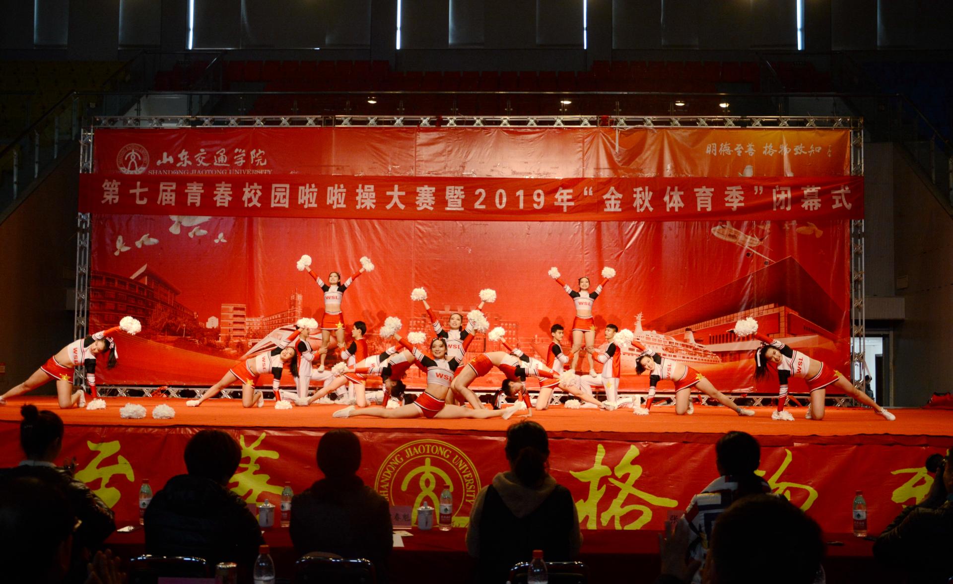 11月27日下午,我校第七届青春校园啦啦操大赛暨2019年“金秋体育季”闭幕式在长清校区体育馆举行,副院长孟庆旭出席闭幕式并发表致辞。本届“金秋体育季”历时40余天,共设踢毽子、排球、网球、跳大绳、定向越野、羽毛球、啦啦操、乒乓球等9个项目,1500余名同学参赛。