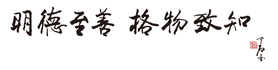 "明德至善 格物致知"选自中国古代著名经典《大学》,其原文为:"大学之道,在明明德,在亲民,在止于至善。""古之于欲明明德于天下者,先治其国;欲治其国者,先齐其家;欲齐其家者,先修其身;欲修其身者,先正其心;欲正其心者,先诚其意;欲诚其意者,先致其知;致知在格物。物格而后知至,知至而后意诚,意诚而后心正,心正而后身修,身修而后家齐,家齐而后国治,国治而后天下平。"